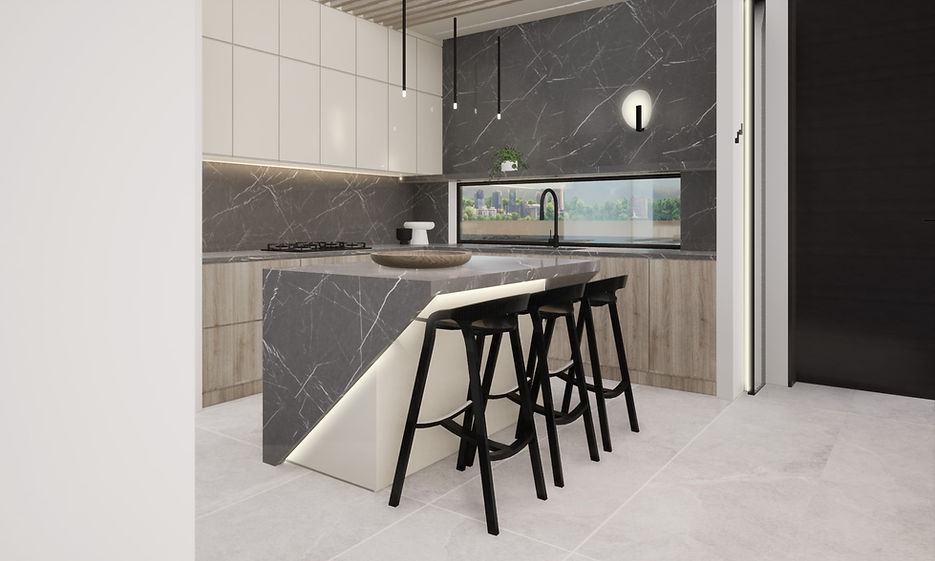 το light living σχεδιάστηκε με έναν μίνιμαλ χαρακτήρα, που επικρατεί η αντίθεση λευκό-μαύρο. Οι ουδέτερες θερμές αποχρώσεις των επιφανειών εξομαλύνουν την αντίθεση και ζεσταίνουν το χώρο του καθιστικού, της τραπεζαρίας και της κουζίνας αυτής της οικίας.